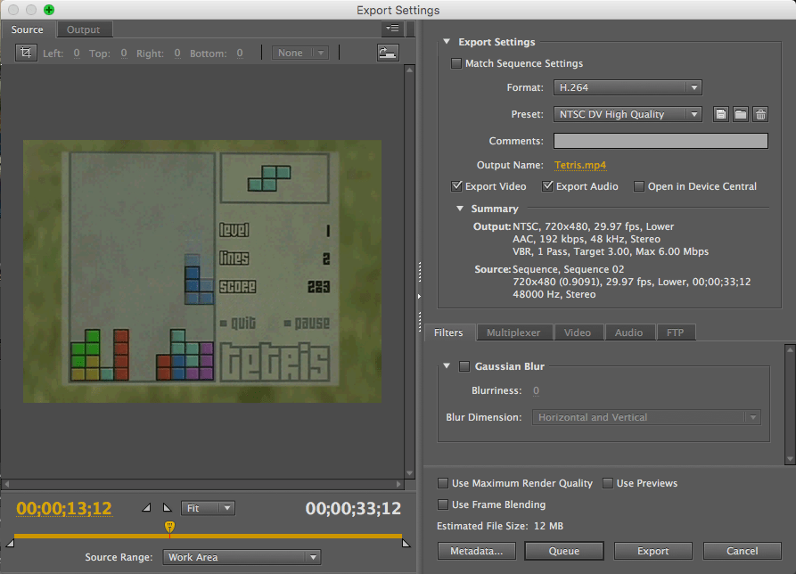 You’ll want to choose File Format “H.264,” which exports as an .mp4 file, and name your project under “Output Name.” When you enter a name, you’ll also have the opportunity to choose a location for your exported file. Then click “Export.”